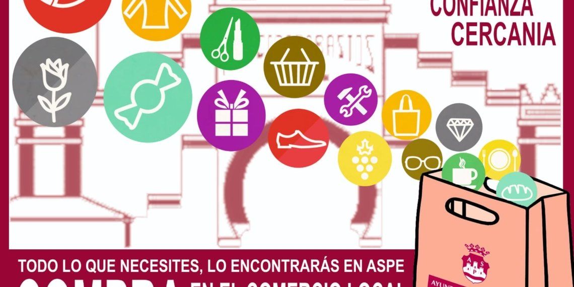 En el cartel, que se está repartiendo por los comercios de la localidad, se recuerda que “todo lo que necesitas lo encontrarás en Aspe”, además con “calidad, confianza y cercanía”. Por eso, desde el Ayuntamiento piden comprar “en el comercio local”.