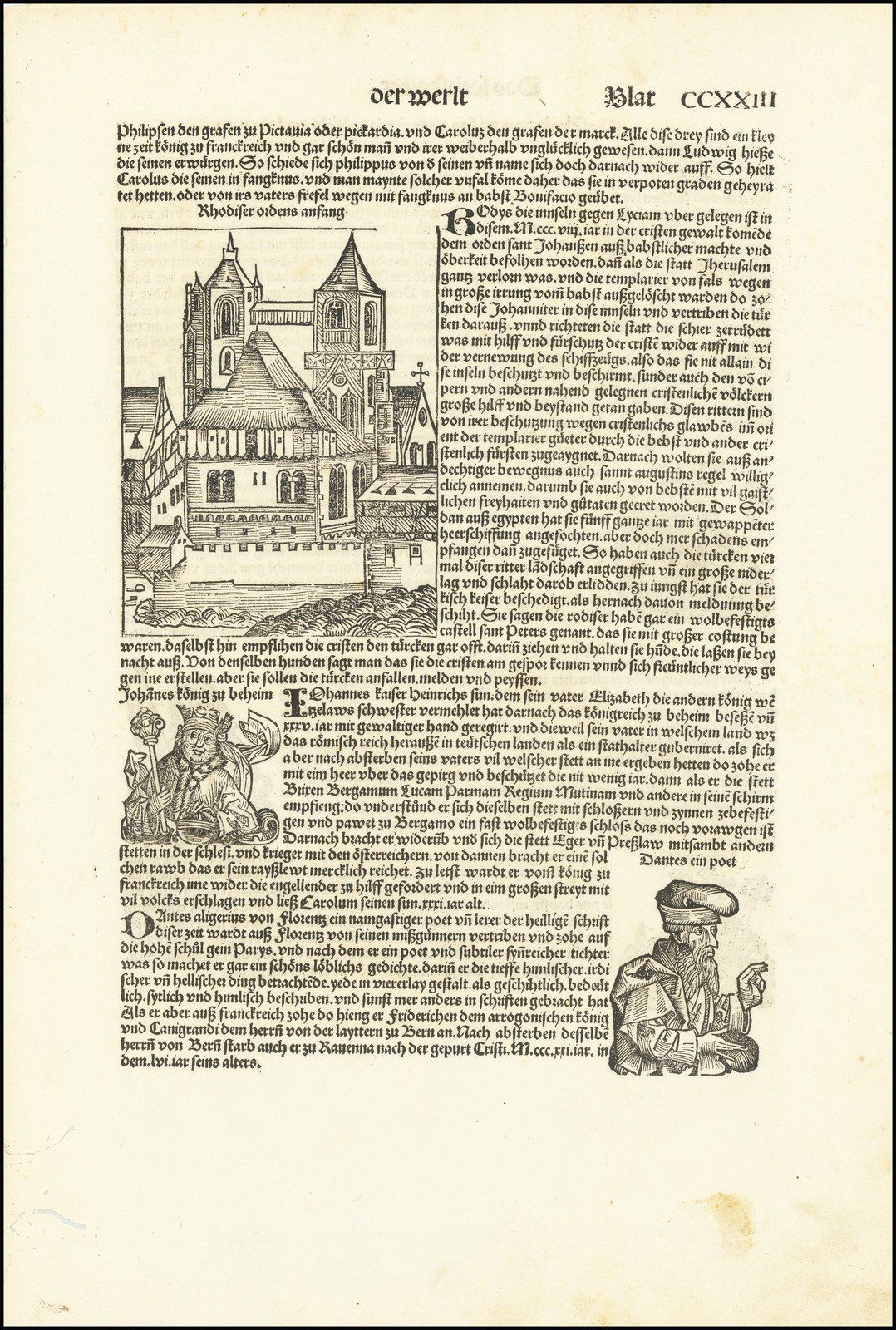 El Liber Chronicarum de Hartmann Schedel: Das Buch der Croniken und Geschichten (traducido libremente como Crónica mundial, pero conocido popularmente como Crónica de Nuremberg) fue el primer libro secular que incluyó el estilo de lujosas ilustraciones previamente reservadas para Biblias y otras obras litúrgicas. La obra fue concebida como una historia del mundo, desde la Creación hasta 1493, con una sección final dedicada a los anticipados Últimos Días del Mundo.