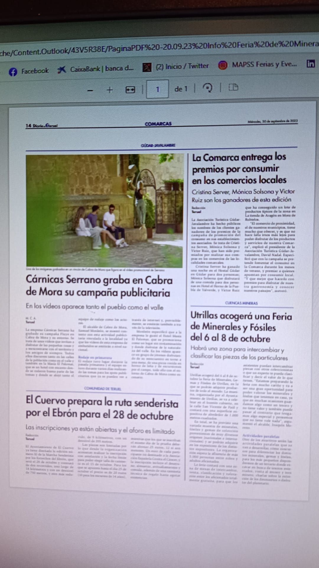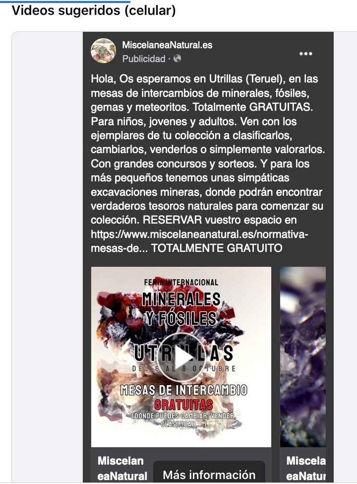Espacio de información de la Feria Internacional de Fósiles y Minerales celebrada en Utrillas 2023