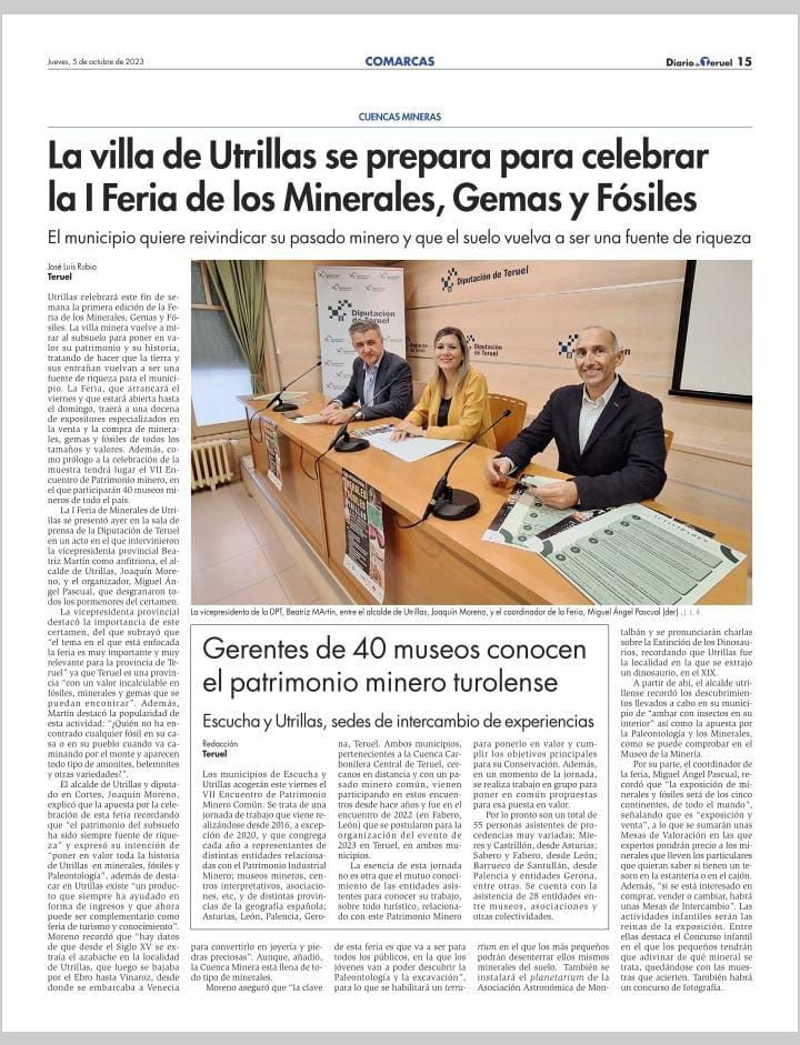 Programa y Horario de la II Feria de Minerales, Gemas y Fósiles de Utrillas y su Contribución a la Agenda 2030 y sus ODS