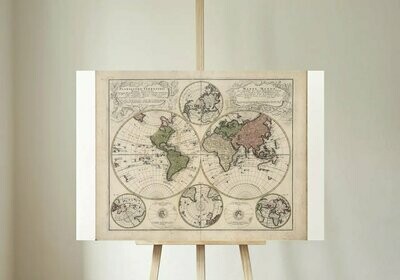 Globo terrestre. 1688. Coronelli, Vincenzo (1650-1718), Venecia. Fecha estimada. Imágenes proporcionadas por la Biblioteca Estatal de Nueva Gales del Sur, donde residen los globos terráqueos impresos originales. Del registro del catálogo de la biblioteca: "1 globo terráqueo en 26 hojas; 24 globos terráqueos cada uno de 27,5 x 64 x 9,5 x 64 cm. y 2 casquetes polares de 36 cm de diámetro. Relieve mostrado pictóricamente. Título de 'Las obras impresas por el Padre Coronelli ' en Epitome Cosmografica M DC LXXXXIII. 24 gajos y 2 casquetes polares para formar un globo terrestre de 42 pulgadas (107 cm.). Incluye texto e ilustraciones. Este globo ilustrado se encuentra entre los más grandes impresos y contiene descubrimientos actualizados por La Salle y Chaumont. Los medallones grandes y pequeños cerca de la dedicatoria al cardenal Cesare D'Estrees fechados en 1688 están en blanco. El retrato de Coronelli incluido el pergamino con "Atlante Veneto" [1690 - 1696], este conjunto terrestre fechado en 1688 es, por lo tanto, contemporáneo con el conjunto de globo celeste que lo acompaña, fechado en 1693. Georreferenciación de globo realizada por Cartography Associates en 2016. Georreferenciados en proyección Cassini-Soldner, luego convertidos a proyecciones geográficas, Robinson y Times. Acompañado por un conjunto "26